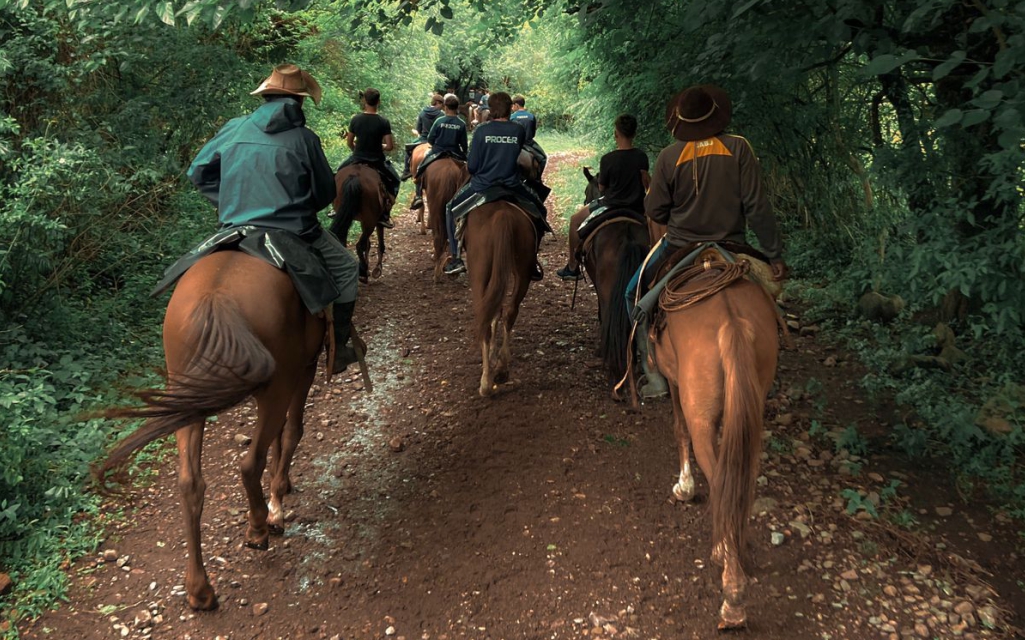 Después del almuerzo, retomamos la cabalgata para seguir explorando nuevos paisajes hasta llegar a la sala de la finca, entre las 16:30 y 17:00, cerrando una jornada llena de aventura, naturaleza y cultura salteña.
