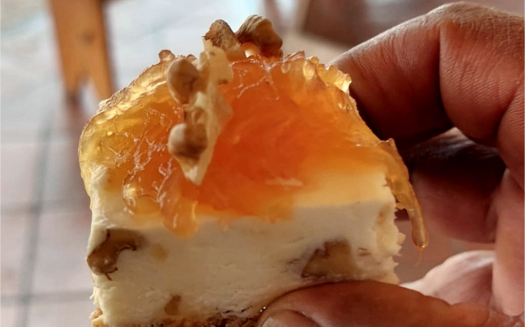 Coronas la noche con un “cheese cake de cayote”, al son de la guitarra y el bombo legüero.