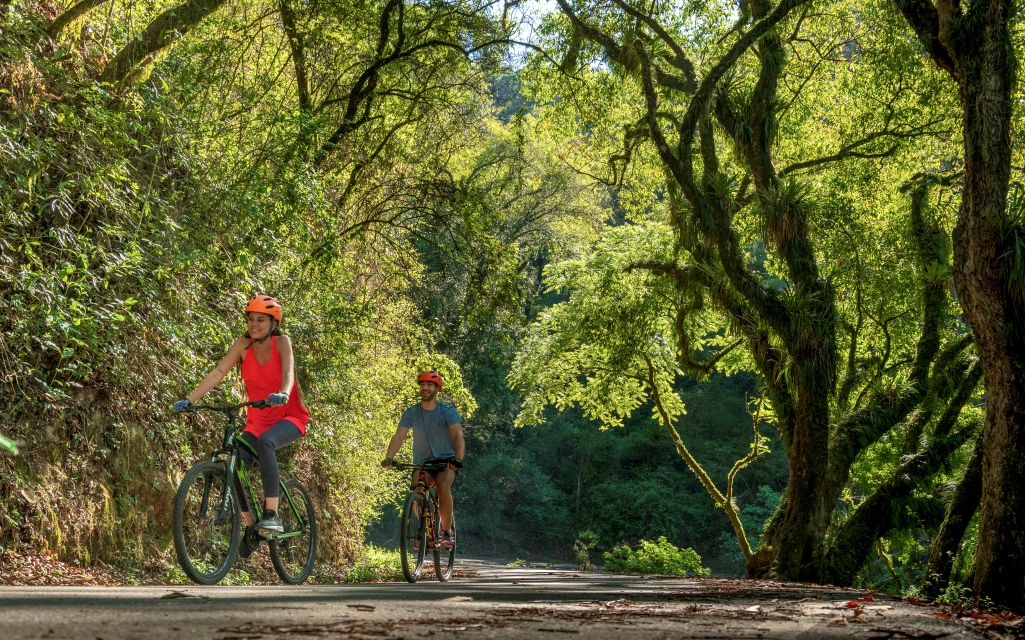 DIA 1: SALTA-PURMAMARCA: Salimos en vehículo por la “vieja ruta 9” desde Salta hacia San Salvador de Jujuy (también llamado camino de cornisa). En La Caldera comenzamos a pedalear esta ruta que si bien sigue teniendo tránsito, ha sido desplazada por la nueva Ruta Nacional 9 que es mucho menos sinuosa y angosta que la que nosotros usaremos. El camino comienza en suave ascenso durante los primeros kilómetros. Una vez arriba, comenzamos a descender y el paisaje se transforma ofreciéndonos un entramado de árboles, helechos y lianas (selva de yungas). Luego de recorrer este increíble camino de cornisa, superando la cuesta a 1520 m.s.n.m. llegamos al límite entre la provincia de Salta y la de Jujuy para luego finalizar en el Dique La Ciénaga, habiendo recorrido poco más de 40 km. Almuerzo, carga de bicicletas en el trailer, traslado en combi a Purmamarca. (Distancia total: 41.6 km – Tipo de camino: Pavimento).